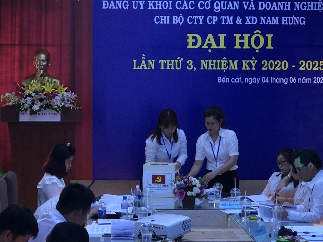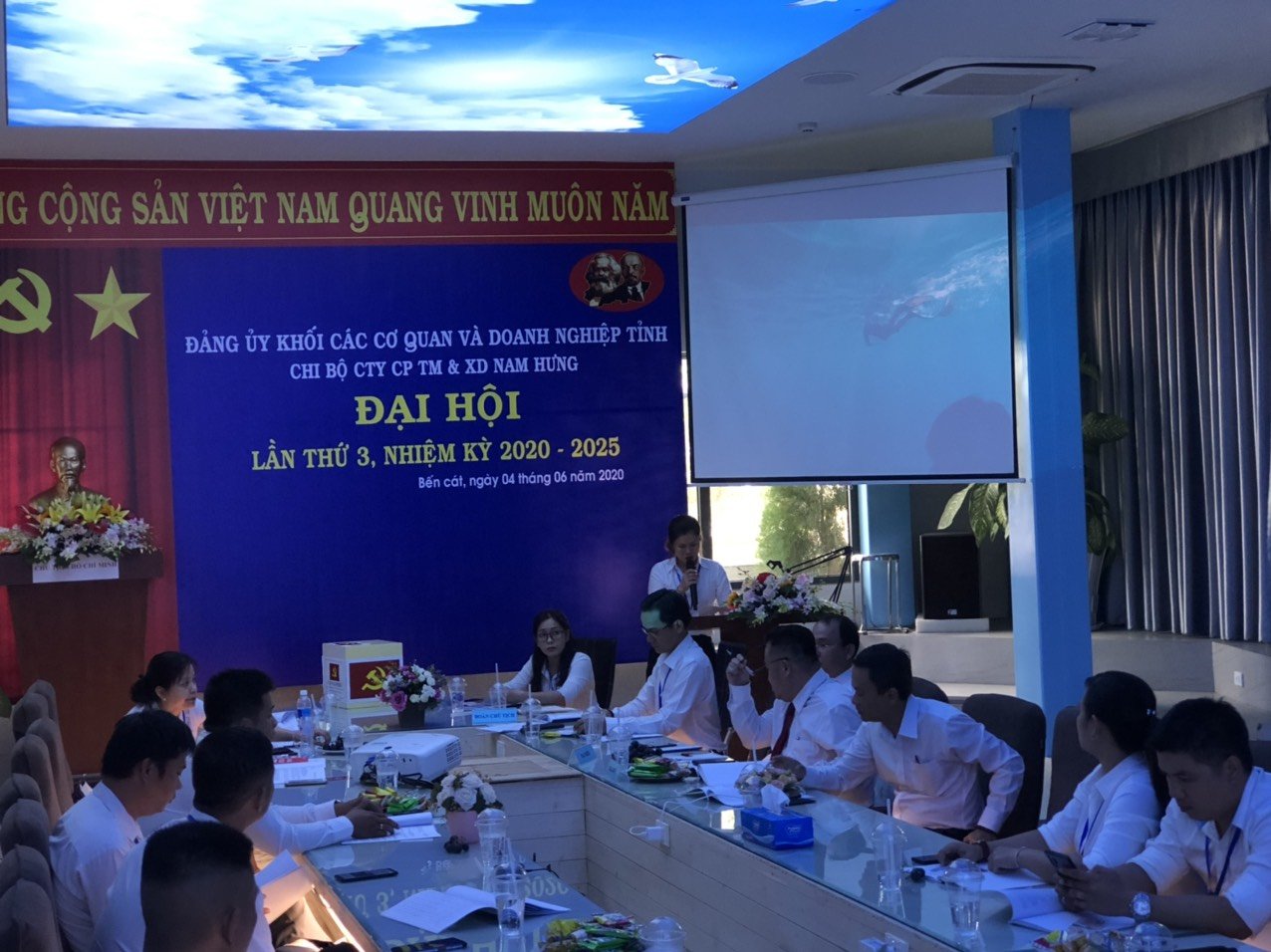 Đại hội đã nghe Báo cáo chính trị của cấp ủy Chi bộ nhiệm kỳ 2015-2020, về kết quả thực hiện Nghị quyết Đại hội Chi bộ nhiệm kỳ 2015 -2020; Mục tiêu phương hướng nhiệm vụ nhiệm kỳ 2020 -2025, Báo cáo kiểm điểm của cấp ủy chi bộ nhiệm kỳ 2015-2020. Trong nhiệm kỳ qua, bên cạnh những thuận lợi, Chi bộ Công ty CP TM & XD Nam Hưng cũng gặp không ít khó khăn và thách thức nhưng với tinh thần đoàn kết cao của tập thể cán bộ, đảng viên trong Chi bộ đã kịp thời tham mưu, đề xuất đường lối chiến lược cho Công ty, chỉ đạo phát triển theo đúng định hướng. Quan tâm chỉ đạo công tác kiến tạo nét văn hóa doanh nghiệp, môi trường làm việc thoải mái thân thiện, và giúp đỡ nhau như một gia đình, để phát huy tinh thần chủ động sáng tạo của cán bộ nhân viên Công ty. Và hơn hết các Đảng viên luôn gương mẫu đi đầu trong mọi nhiệm vụ.