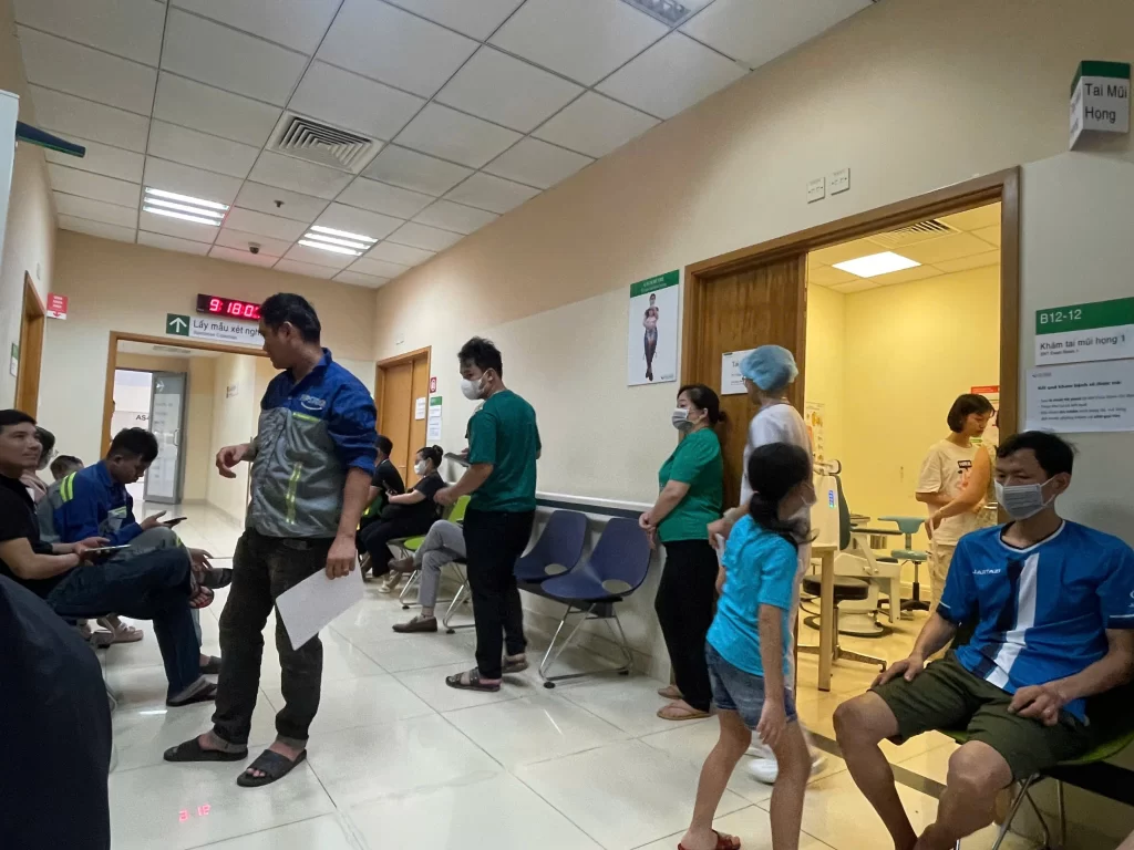 Aware of the importance of the health check-up program, all employees arranged their time and work schedules to be present at the examination site to undergo the health check-up procedures. During this periodic health check-up, employees will receive a general examination (eyes, ears, nose, throat, teeth, jaw, blood pressure measurement, electrocardiogram, etc.), blood tests (indicators assessing liver and kidney function, blood sugar, blood uric acid, hepatitis B, etc.), abdominal ultrasound, X-ray, and urine tests (10 parameters to detect diabetes, kidney diseases, glomerulonephritis, urinary tract infections, and diseases of other organs in the body). Female employees will undergo gynecological examination, microscopic examination, and screening for cervical cancer and breast cancer according to the list of examinations stipulated in Appendix 3b – Circular 09/2023/TT-BYT dated May 5, 2023, on health check-up guidelines.